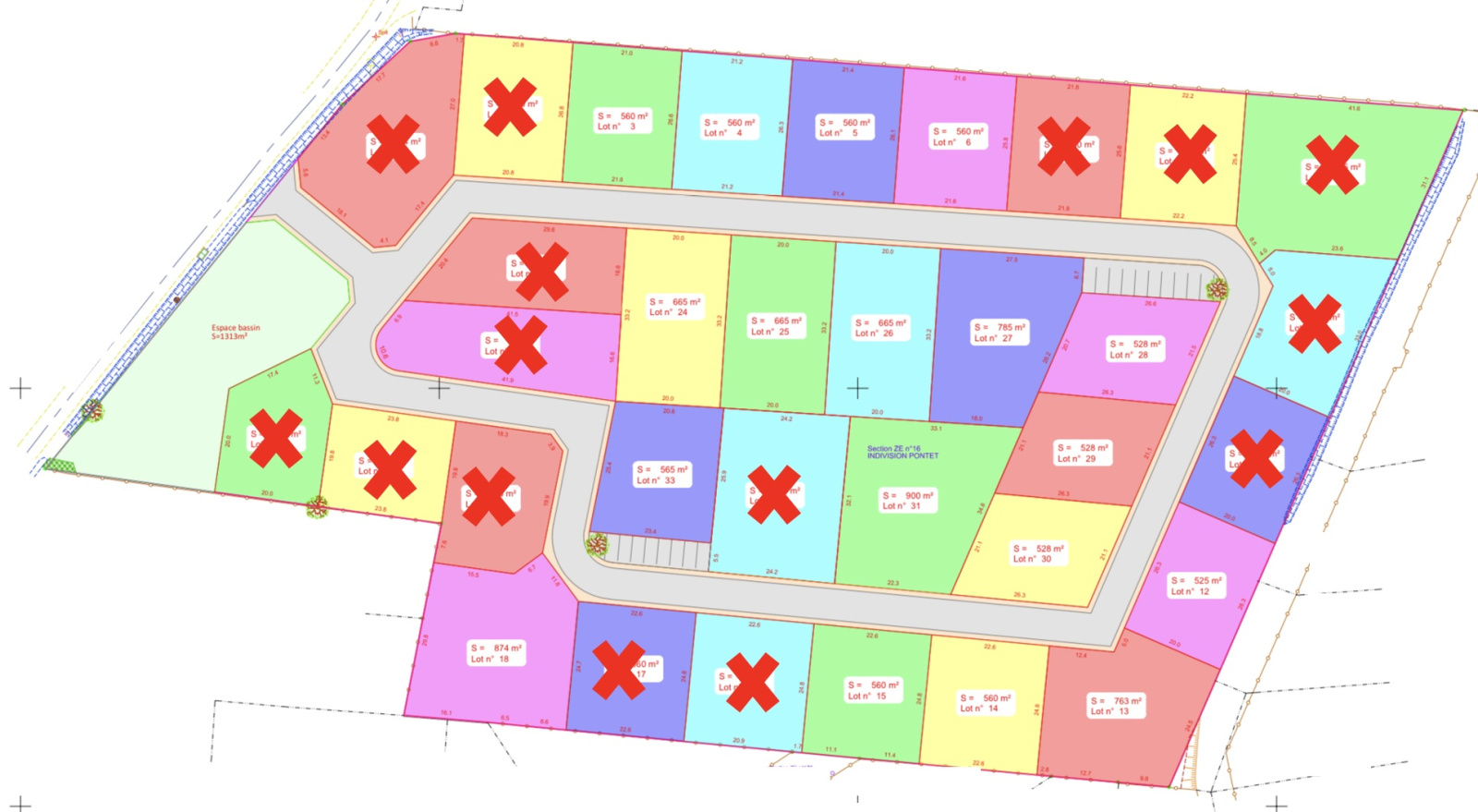 - Lots 24, 25, 26 : 665 m² - 56 605€ chacun